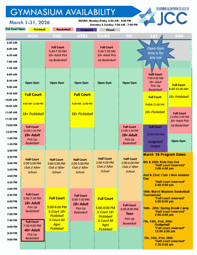 Check out the gym availability on the schedule below.
